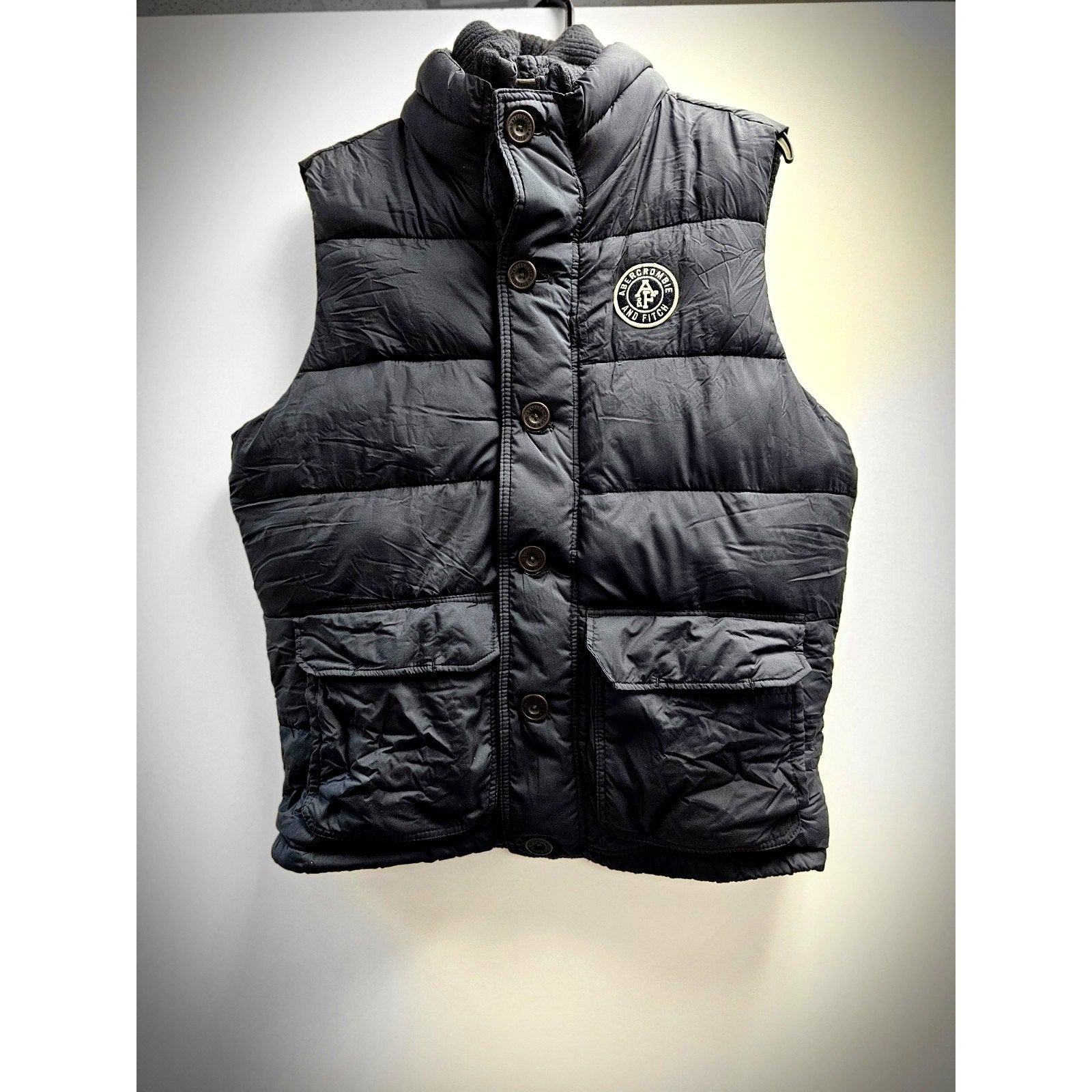 The Abercrombie & Fitch Puffer Vest is a stylish and practical outerwear piece for men. This blue...