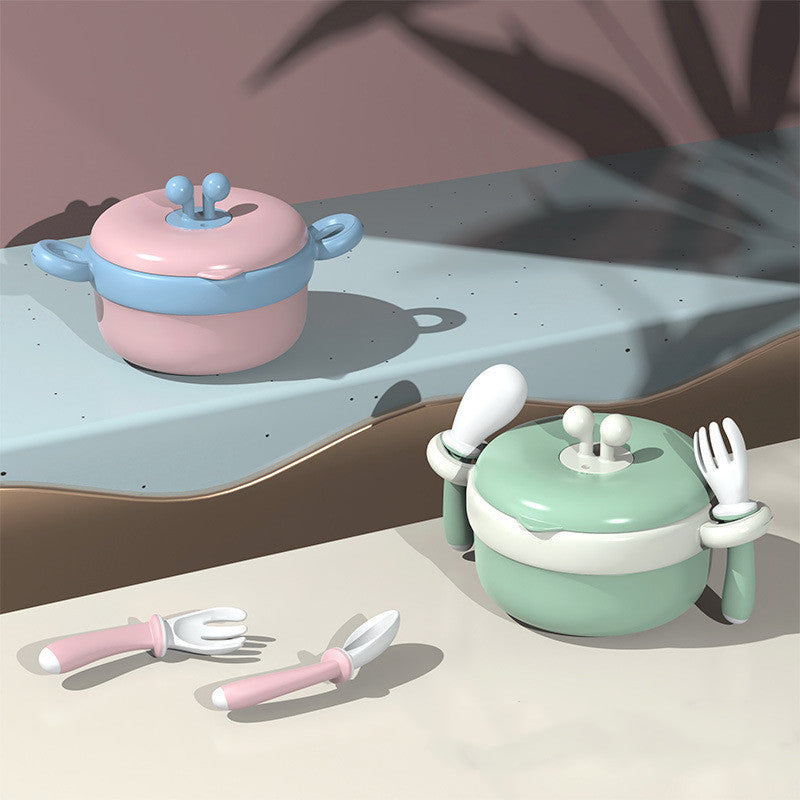 Baby Tableware Stainless Steel Bowl Baby Water Infusion Heat Preservation Bowl Supplementary Food Bowl Suction Cup Spoon Set