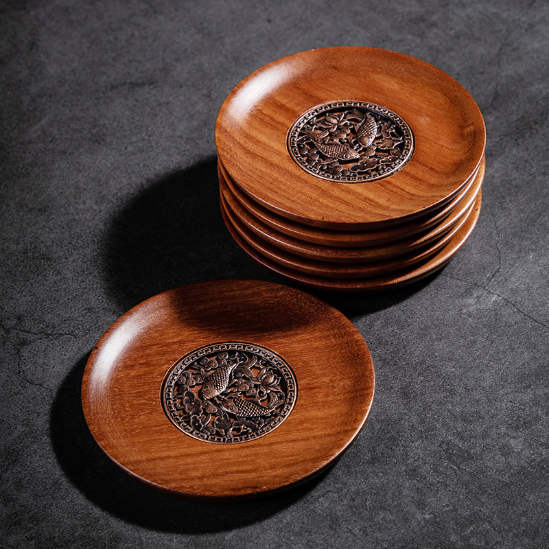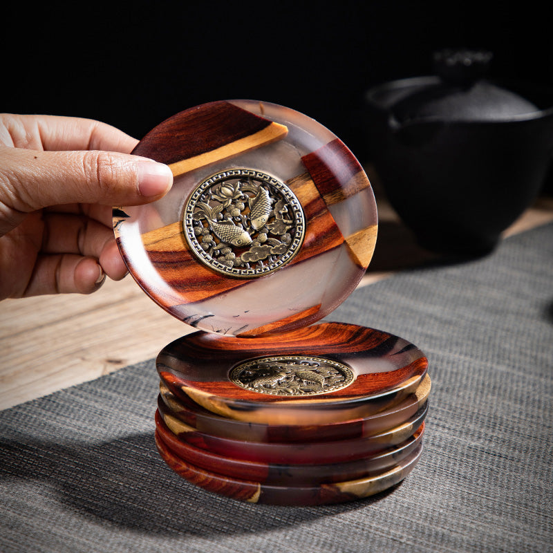 Chinese style tea coaster tea ceremony zen home saucer set heat insulation six pieces of resin solid wood kung fu tea set accessories