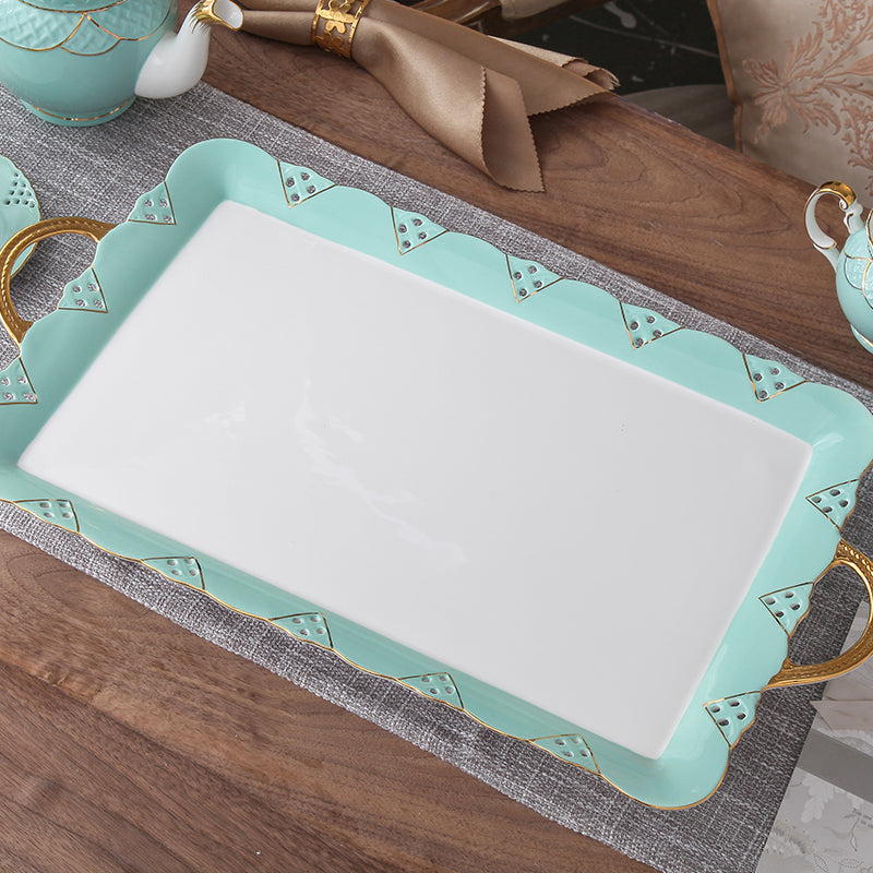 K:Hollow powder-sugar pot Hollow blue-2 layer dessert plate-gift box