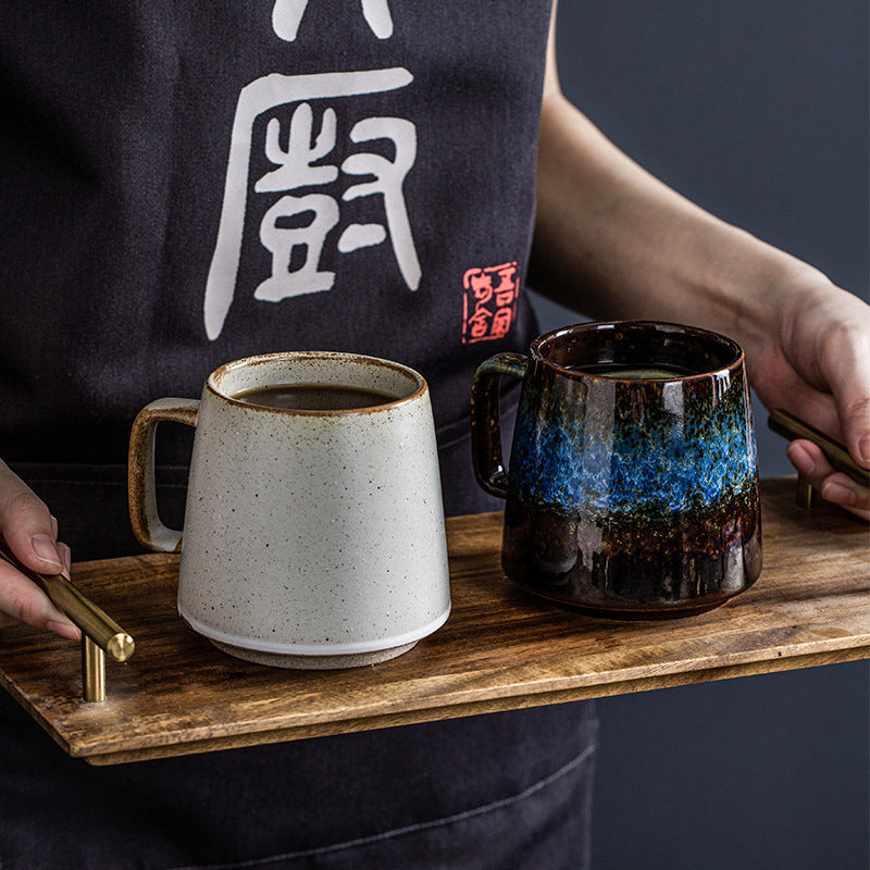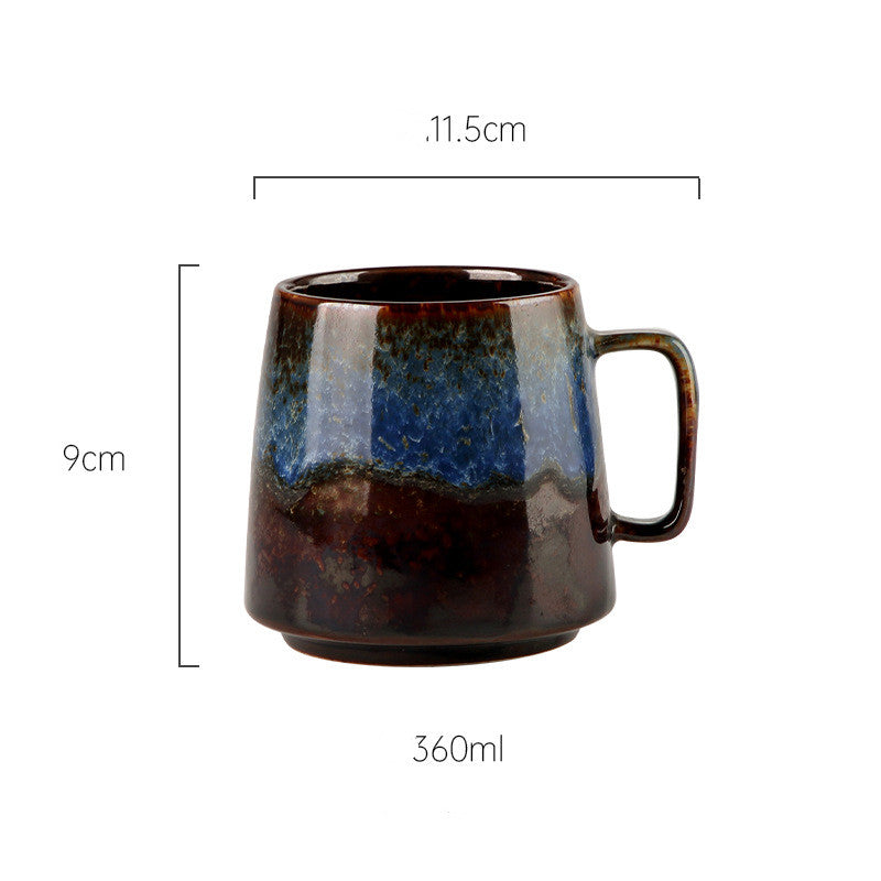 Color: 1 style: ceramic cup with handle-colorful red, 2 style: ceramic cup with handle-galaxy blue, 3 style: ceramic cup with handle-matte blue, 4 style: ceramic cup with handle-black with rust, 5 styles :Ceramic cup with handle-Matcha green, 6 styles: ceramic cup with handle-red dot white, style 7: ceramic cup with handle-colorful red belt base, 8 style: ceramic cup with handle-galaxy blue belt base