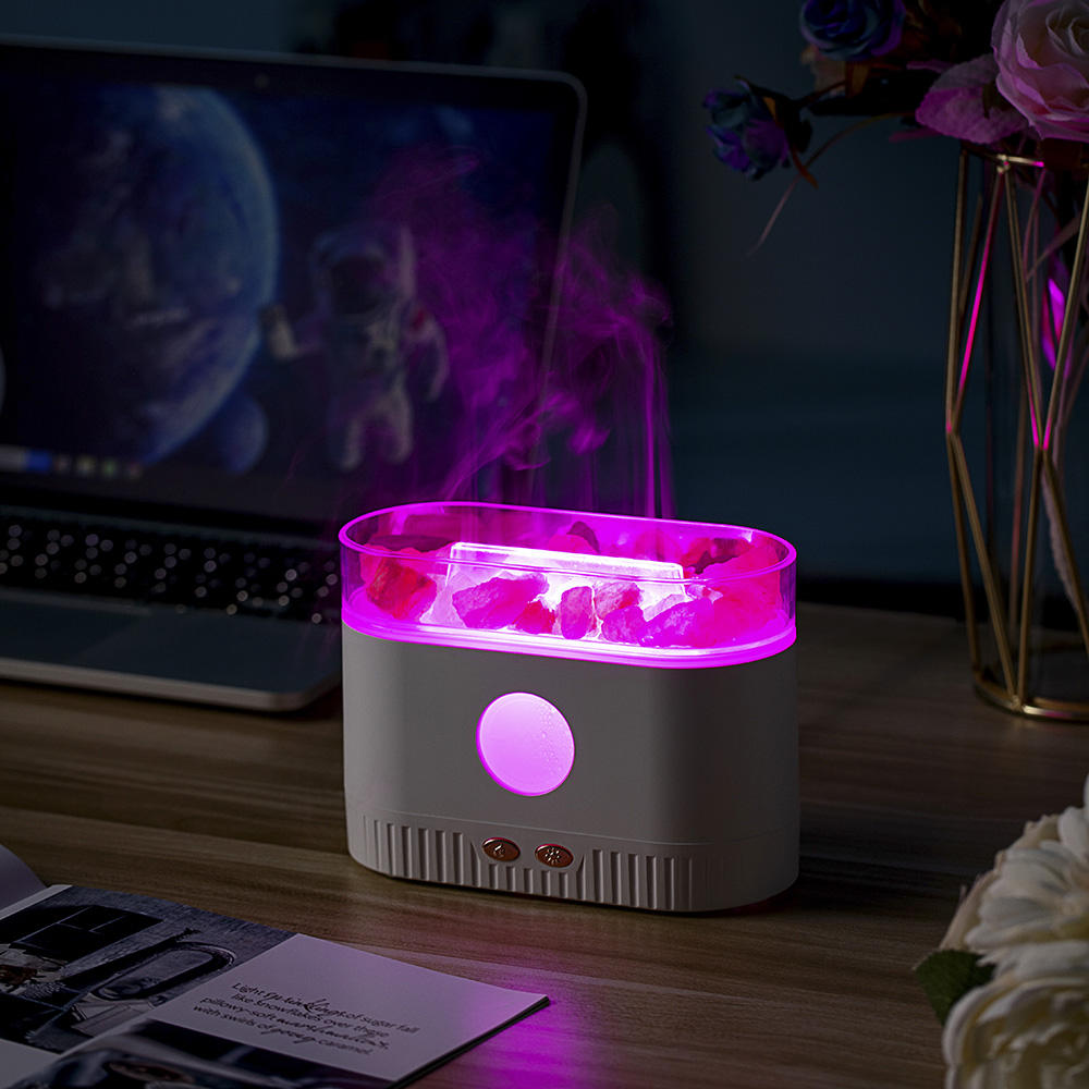 Drop Shipping Factory Direct Humidifier Flame Salt Stone Aromatherapy Machine Essential Oil Colorful RGB Light Flame Aroma Diffuser